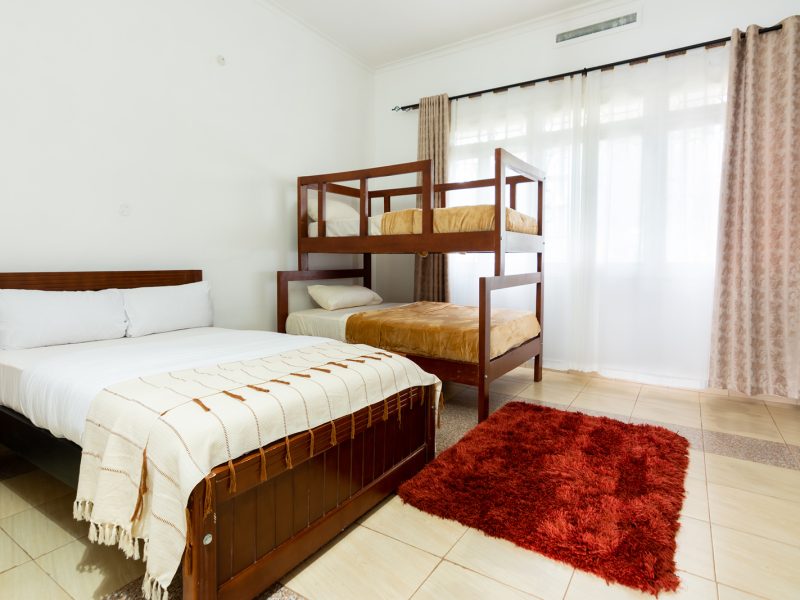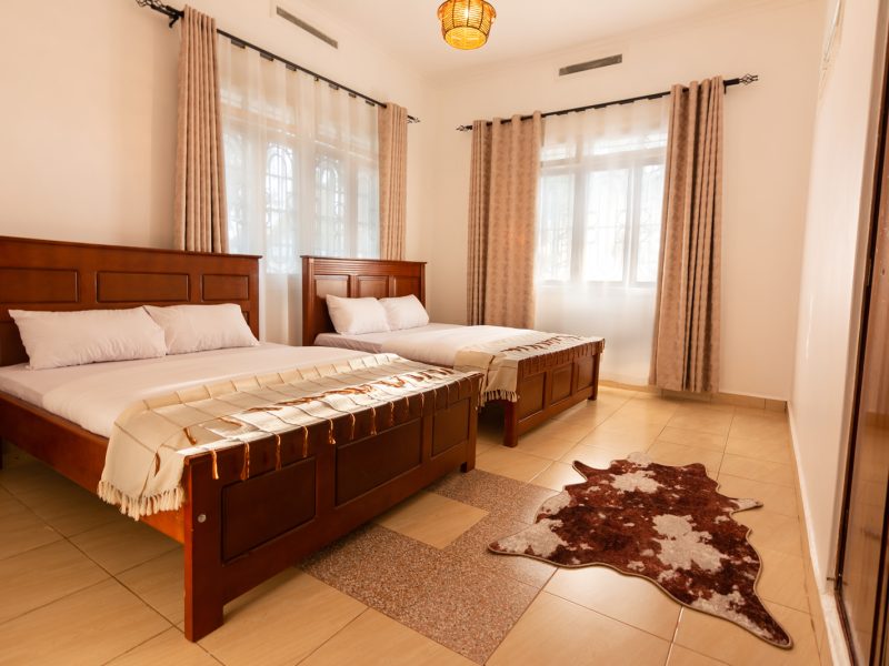 Located on Dauncey Road in Jinja, Mutima Villa offers a private, gated retreat ideal for families, groups, or long-stay visitors. The villa features four spacious rooms in the main house, including three double rooms and one family room, along with two bathrooms, a private kitchen, and additional living space. Two separate annexes, each with a double room, kitchen, and bath, provide extra privacy and flexibility.